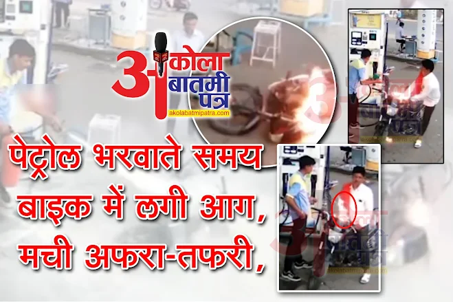 पेट्रोल भरवाते समय बाइक में लगी आग, मची अफरा-तफरी